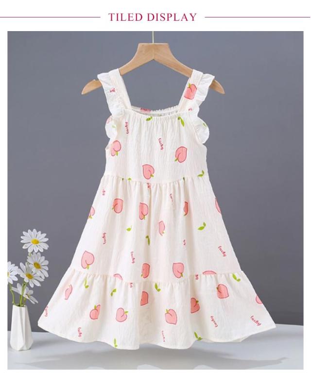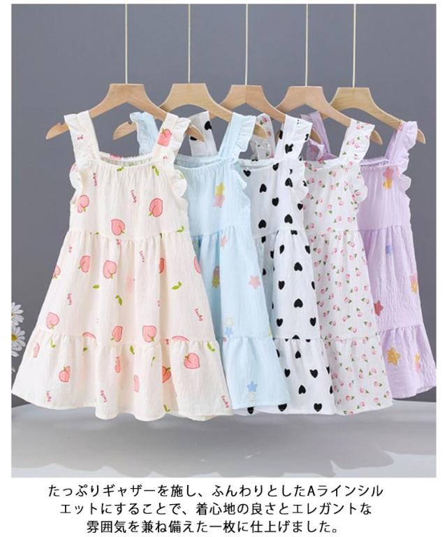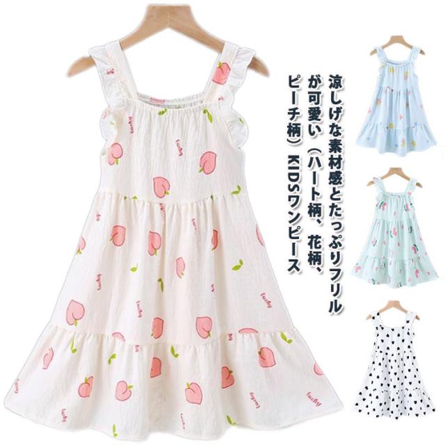 パジャマ 夏 ピーチ柄 寝間着 キッズ ワンピース 女の子 フリル 可愛い ナイトウェア 花柄 100 コットン 総柄 ガールズ 部屋着 ノースリーブ ハート柄 フレアワンピース 綿 夏 薄手 吸汗速乾 通気性 春 ルームウェア 110 120 130 140 150 160