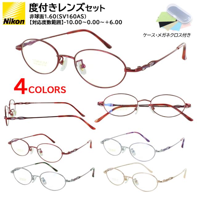 度付き メガネ 度あり 度付きメガネ 近視メガネ レディース 女性 オーバル チタンフレーム 軽量 度入り 近視 乱視 遠視 老眼 度なし 伊達 だて 眼鏡 薄型 非球面レンズ セット 7025 レッド パープル/シルバー ピンク/シルバー ベージュゴールド おしゃれ