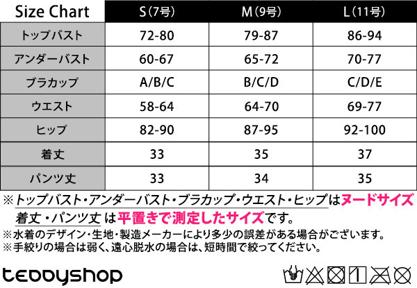 ※トップバスト・アンダーバスト・ブラカップ・ウエスト・ヒップはヌードサイズ、