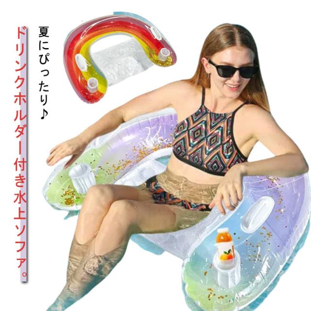 | 夏にぴったり♪ドリンクホルダー付き水上ソファ。 水の上でリラックスしながら、ドリンクを飲め、のんびり過ごせるハンモック。 内側ラメ入りで動くとキラキラ綺麗に、SNS映え!注目度抜群! ビーチやプールで大注目を浴びることができるオシャレなフロート! 夏のプールパーティー、バーベキュー、夏のビーチ、ナイトプール、休暇や旅行アイテムに最適です。夏を楽しむ新しいアイテムです! | |
