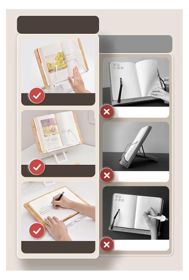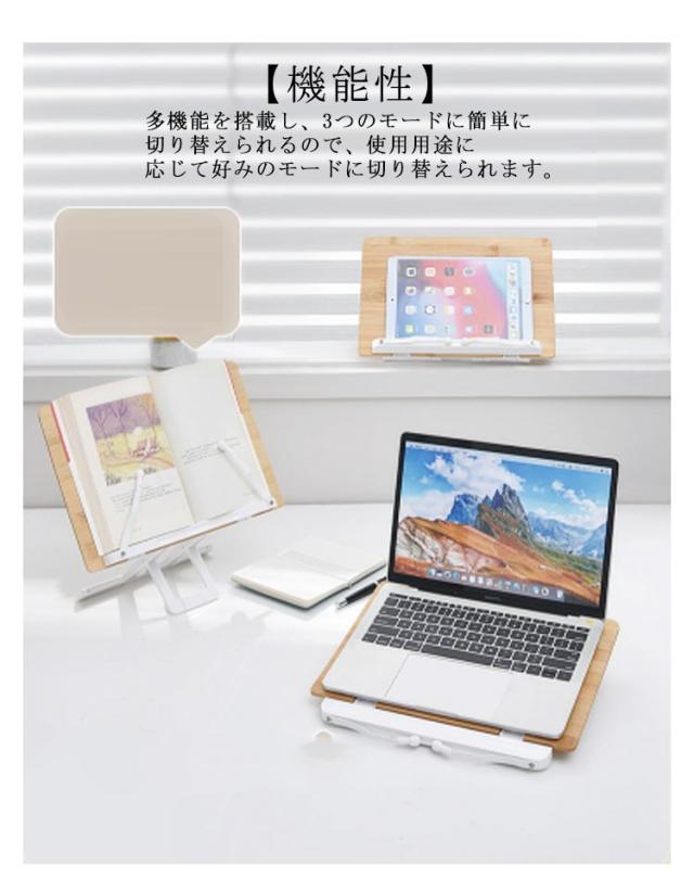 | 角度調節も自由自在!ブックスタンドで肩こりや眼精疲労を軽減。スマホやタブレットでも使えるブックスタンド 【機能性】多機能を搭載し、3つのモードに簡単に切り替えられるので、使用用途に応じて好みのモードに切り替えられます。 関節は180度の調整が可能で、様々な姿勢、使用用途でお使いいただけます。体格に合わせて最適な角度に調整することで、肩こりや眼精疲労を軽減し、長時間の読書/学習/デスクワークによる疲労を抑えます。 ストッパーの先端には新発想ベアリング式を採用し、ころころと回転するのでストッパーを外すことなくページめくりを可能にしております。 【安定性】幅広の台座とプラスチック脚部がしっかりとした安定性を生み出し、快適にご使用頂けます。 脚部にはゴム製リングを計6か所に装着し、しっかりとホールドします。 【様々な使用用途】読書台/タブレット台/譜面台/レシピ台/スケッチブック立て、ペンタブ台、パソコンスタンド、作業台など、幅広い使用用途で活用頂けます。 【素材】良質な木を選定し丁寧な研削加工で滑らかな仕上がりに仕上げております。また、強度をアップするため浸炭加工にて強力な耐久性を実現しております。自然の香りがほのかに香る天然木を使用し、インテリア性にもこだわった1台です。 | |