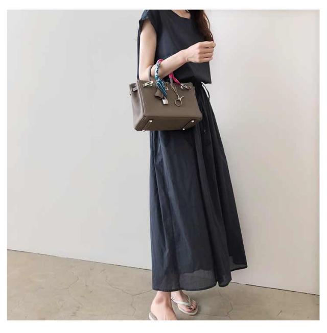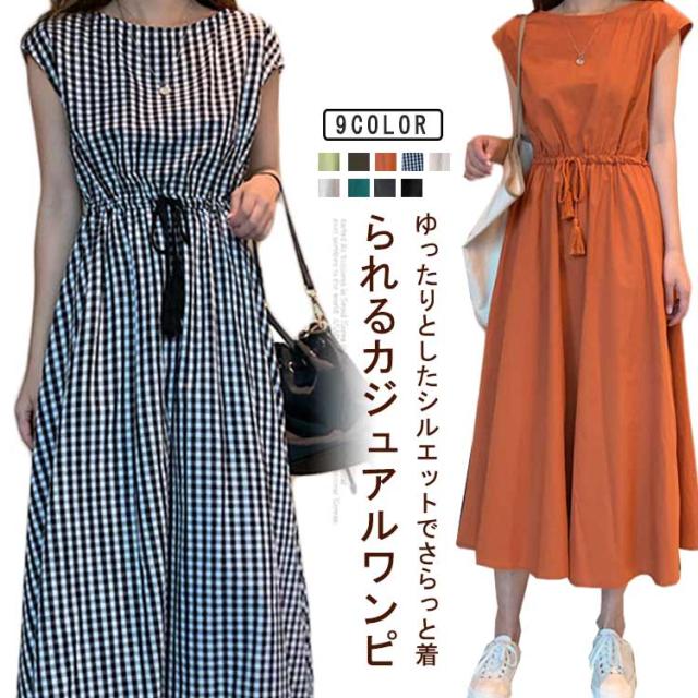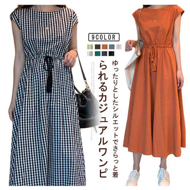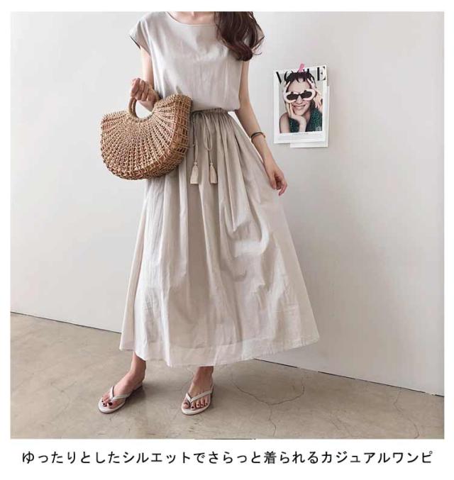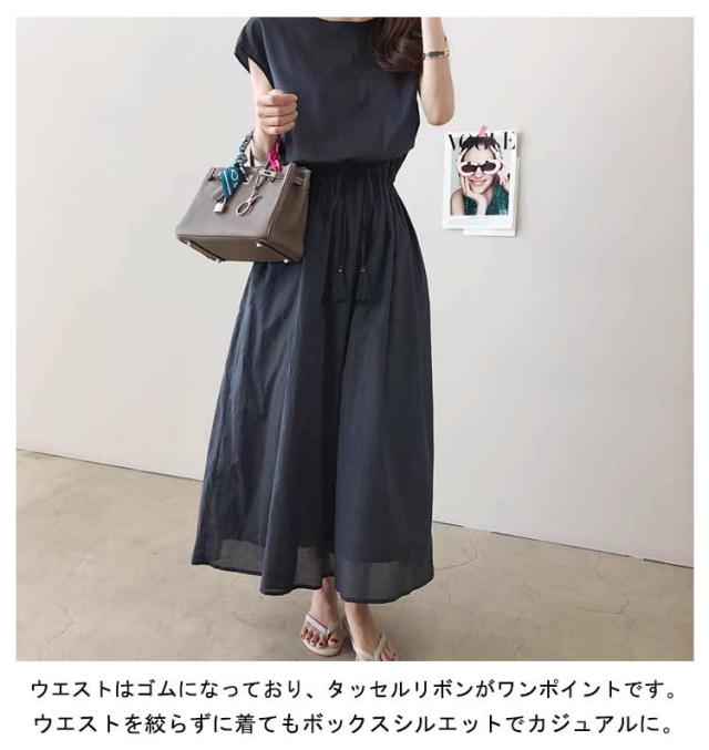 | ゆったりとしたシルエットでさらっと着られるカジュアルワンピ ウエストはゴムになっており、タッセルリボンがワンポイントです。ウエストを絞らずに着てもボックスシルエットでカジュアルに。 ウエストをマークしてリボン結びにすれば、大人かわいいシルエットが完成します。ブラウジングしたウエストが可愛さを演出してくれます。 袖は二の腕をゆったりと覆うフレンチスリーブ。 足首がきれいに見える丈なので体型カバーにもなり、暑さが大変な妊婦さんにもマタニティウェアとしておすすめです。 | |