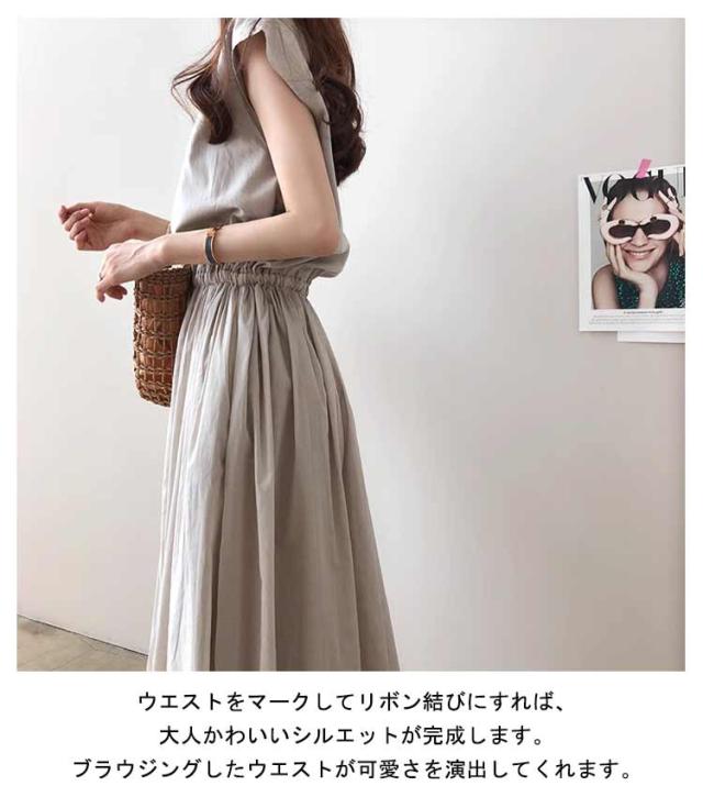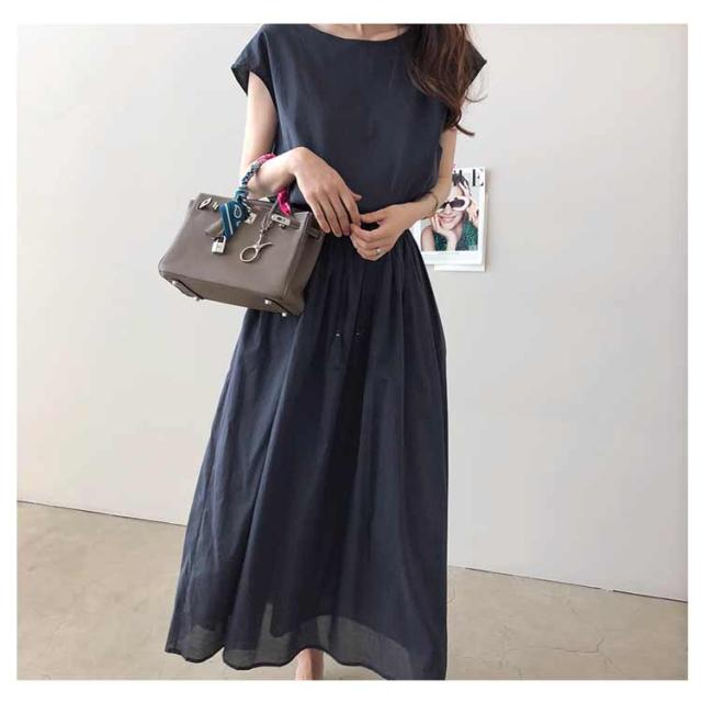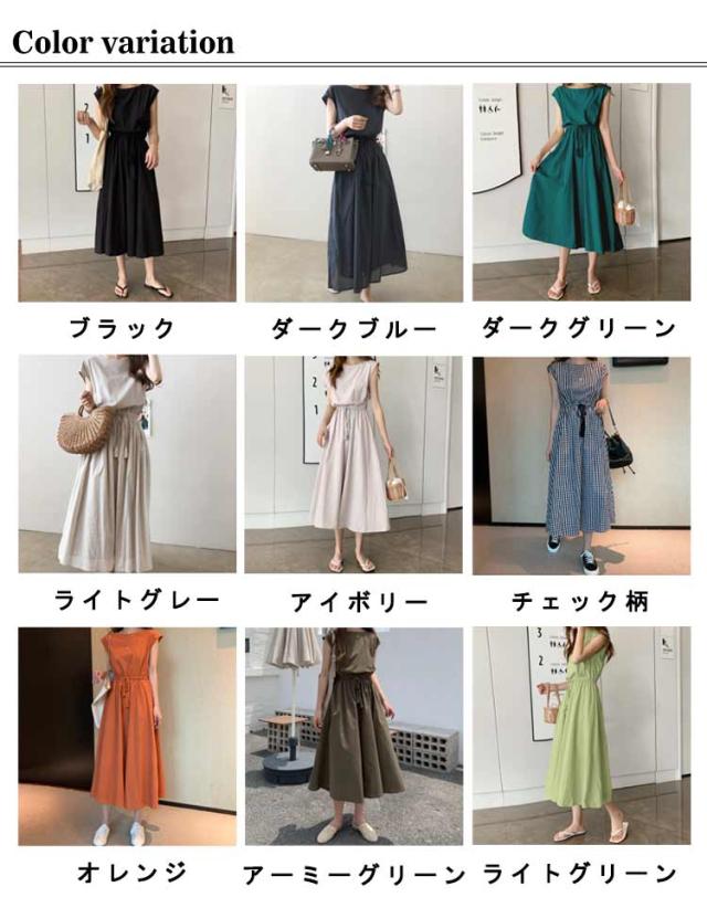 ウエストゴム ワンピース レディース 半袖 綿麻 ナチュラル マキシワンピース 着痩せ ロングワンピース 体型カバー 無地 ロングワンピ フレンチスリーブ クルーネック 綿麻ワンピース 春 夏 大きいサイズ シンプル 大人 女性 送料無料