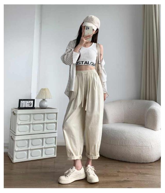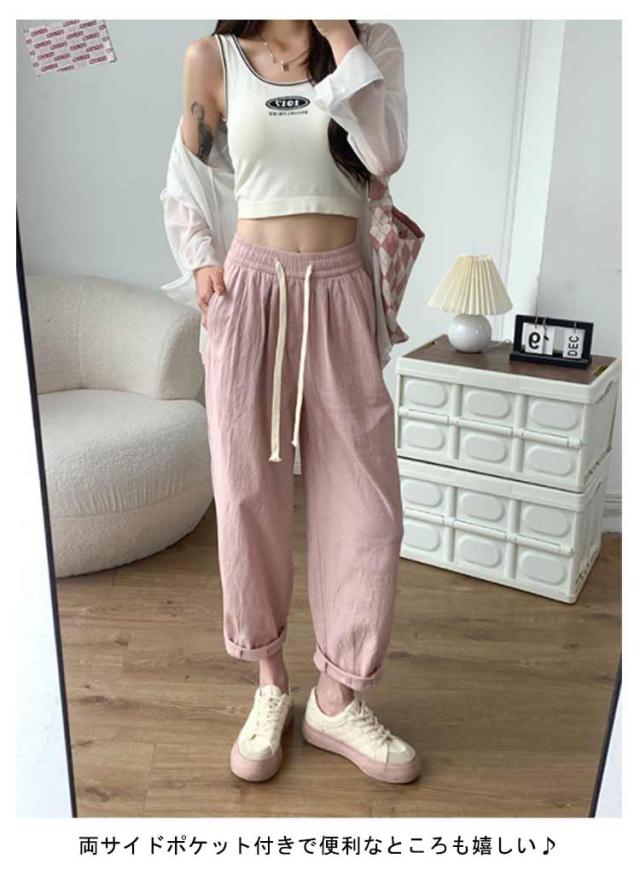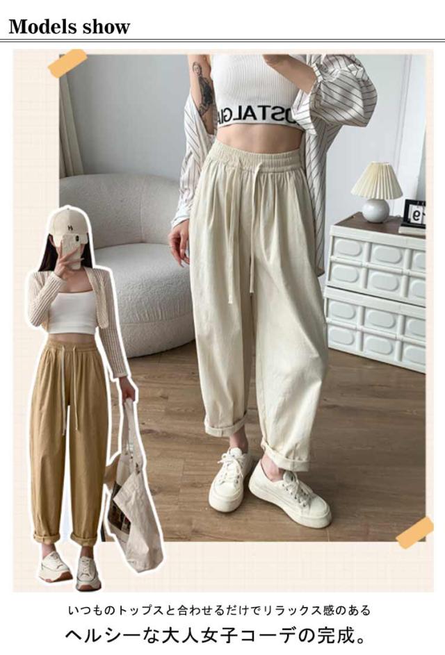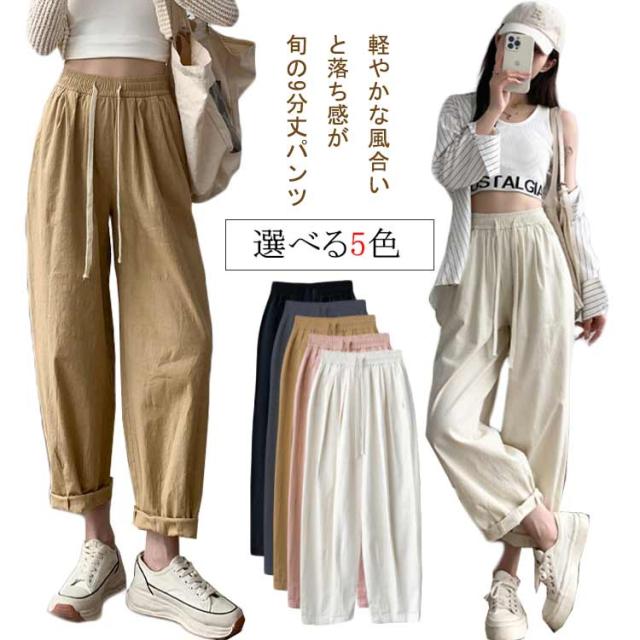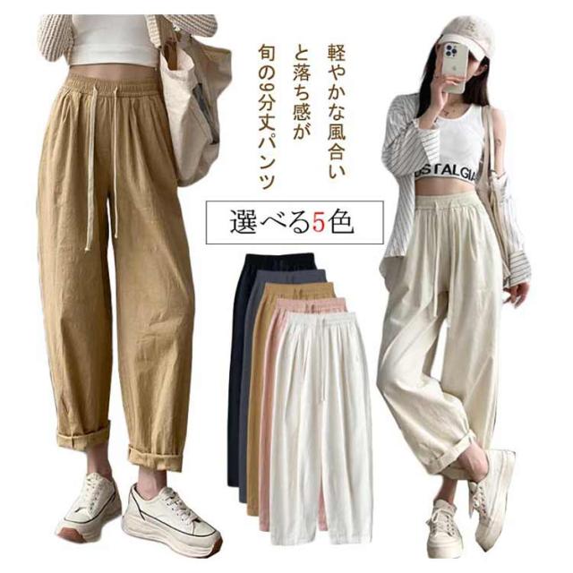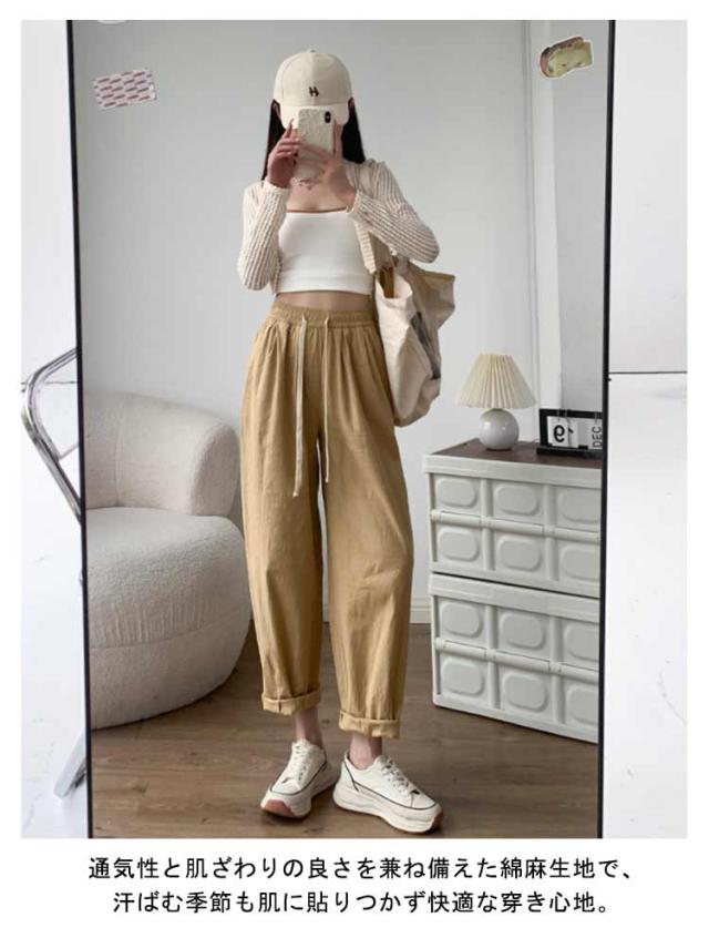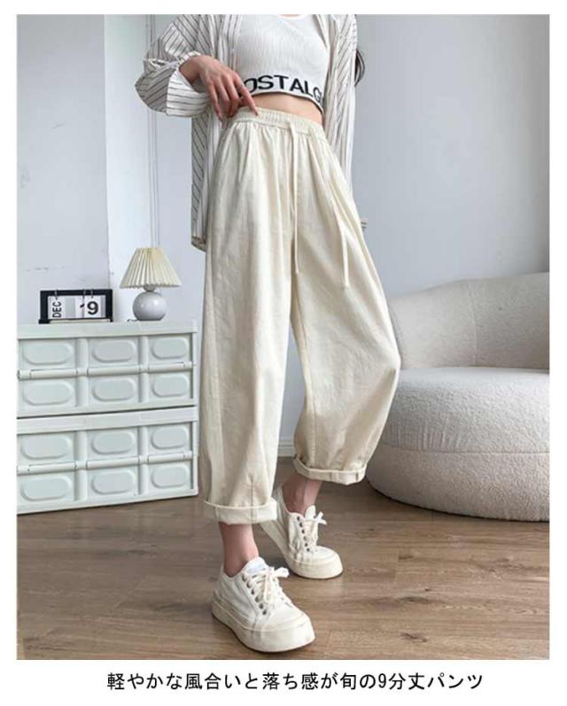 サルエルパンツ 9分丈 レディース ロングパンツ 綿麻 ナチュラル ワイドパンツ リネン 薄手 涼しい ズボン 総ゴム ポケット 体型カバー 無地 シンプル きれいめ 高校生 大学生 リラックス 上品 通勤 通学 プレゼント ギフト 夏服 送料無料