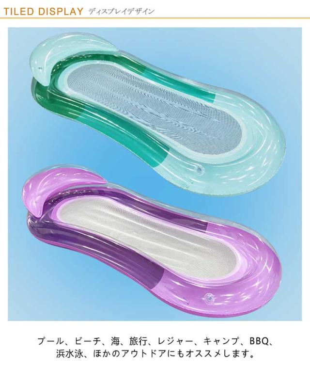 | ぷかぷか浮かんで気持ちいい♪ ゆったり大きいサイズ、大人ものんびりリラックスできるフロートベッドです。 浮き輪ベッドの底面はメッシュで出来ているため、水に浸かりながらリラックスしてレジャーを楽しめます。 立体枕デザイン、まったりリラックスできる大人の浮き輪です。 使わない時は空気を抜いて、折りたたんでコンパクトに収納でき、軽量で子供と女性も持ち転びに便利です プール、ビーチ、海、旅行、レジャー、キャンプ、BBQ、浜水泳、ほかのアウトドアにもオススメします。 | |