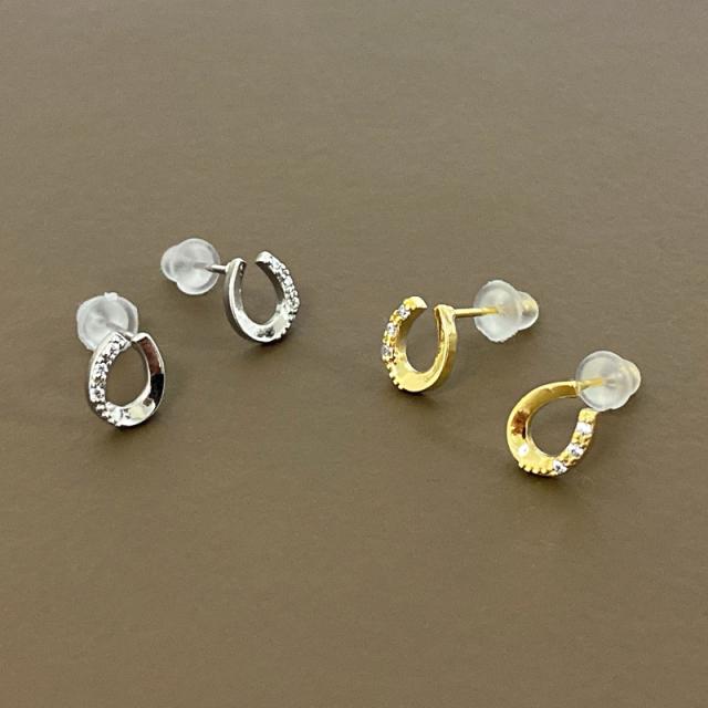 送料無料 ミニ馬蹄ハーフストーンピアス ホースシュー U形 レディース 女性用 ニッケルフリー シルバー ゴールド 幸運 干支 午年 キュービックジルコニア