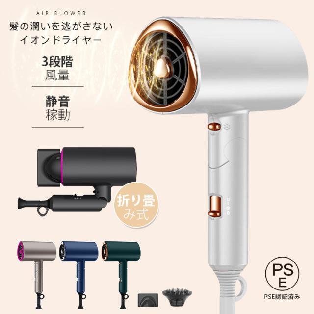 ヘアドライヤー 速乾 ドライヤー イオンドライヤー マイナスイオン 大風量 静音 温度調整 折り畳み式 3段階風量 美髪 熱風 温風 冷風 5カラー 恒温ヘアケア 家電 プレゼント