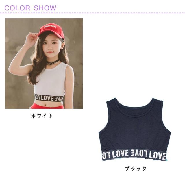 スポーツ ヒップホップ ブラック へそ出し インナー ホワイト キッズダンス 重ね着 ショート丈 キッズ服 女の子 ダンス衣装 舞台服 演出服 子供服 キッズ服 ガールズ 小学生