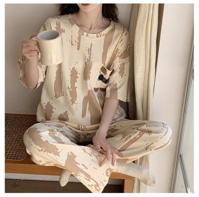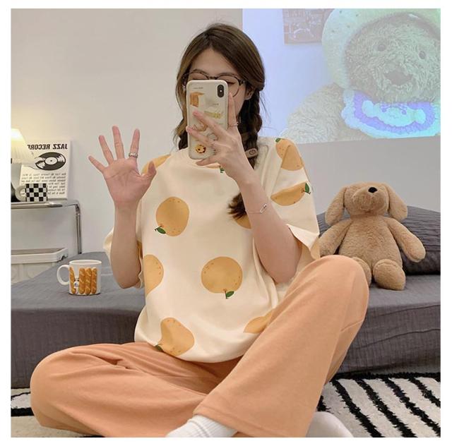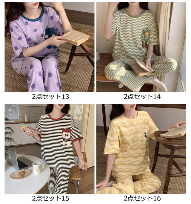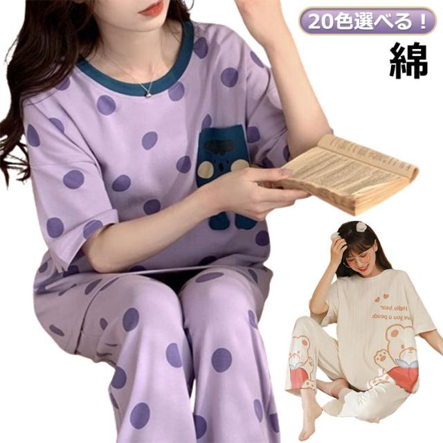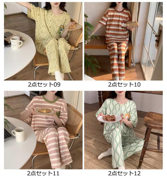 半袖 上下セット 春夏 ルームウェア かわいい レディース 2点セット ルームウェア 夏 秋 長ズボン 半袖長ズボン 薄手 半袖 春 ゆったり ロングパンツ 下 ポケット 可愛い セットアップ おしゃれ 大きいサイズ 夏 涼しい 外出 入院 産後 綿