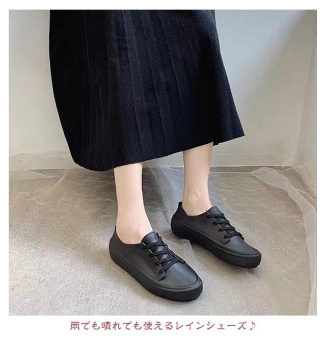 | 【全4色】【完全防水】【23〜25cm】 雨の日のお出かけにも安心◎防水スニーカー。 地面から約4cmまでの水の侵入を防ぐ! 足当たりのいい生地を使用しているから、素足に当たっても痛くない。 雨でも晴れでも使えるレインシューズ♪ 柔らかな素材で屈曲性がよく動きやすい おしゃれなスニーカーデザインでどんなスタイルにもぴったり。 一体型の作りで、縫い目は全てフェイクステッチだから浸水の心配も無し! マットな質感とシンプルなカラーのレインスニーカーです。 | |