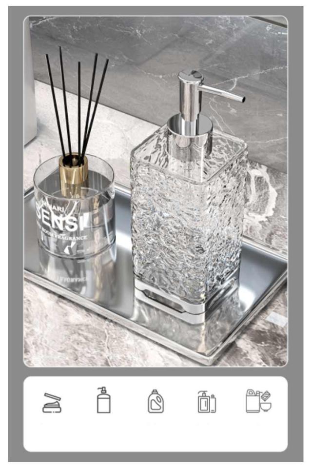 | 水の波紋のような凹凸感のあるデザインが魅力的な泡ソープボトル。 軽く押しただけでふんわりと上質な泡が出る、泡タイプのソープディスペンサー。きめ細かな泡は、手肌をやさしく洗いあげます。 | |