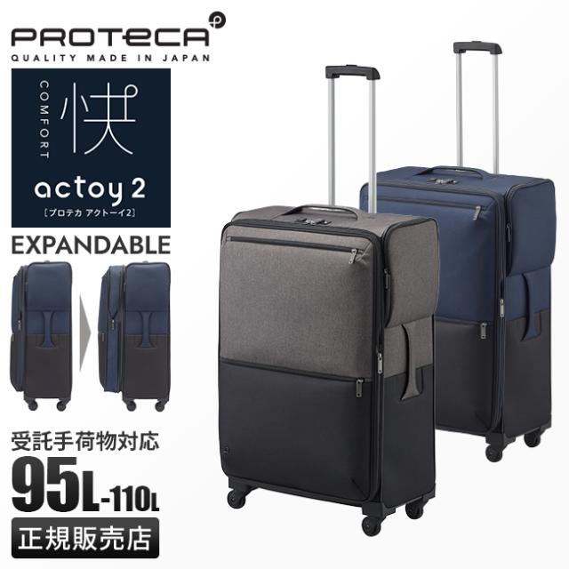 | ■プロテカ Proteca / アクトーイ2 actoy 2 / ソフトキャリーケース Lサイズ 容量拡張 キャスターストッパー 日本製 預け入れ手荷物無料 最大サイズ【12104】 |