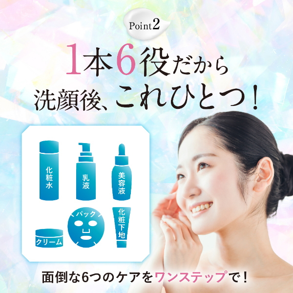 カリスマエステティシャン開発・プロデュースの本格的オールインワン美容液です。中身にこだわって作ったプロのお墨付き美容液で100種類の美容成分を贅沢に配合しています。これ1本で化粧水、乳液、美容液、クリーム、化粧下地、パックと1本6役もこなせるオールインワンゲル。