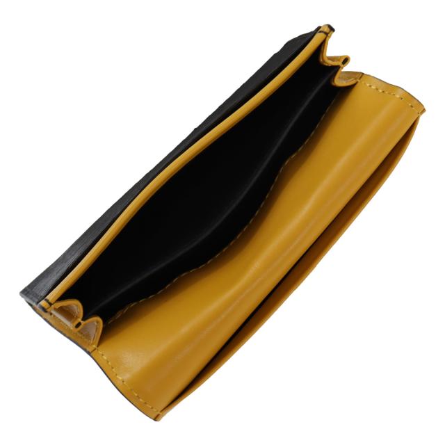 見る角度によって模様が浮かび上がる、深みあるデザインに仕上げたLoge「ロージュ」シリーズ。エンボス加工を施した牛革を使用しており、傷が付きにくい素材感となっています。メインカラーのクロにポイント使いしたラインカラーが手元を彩ります。また、内装は外側のラインカラーを用いた仕上がりになっています。