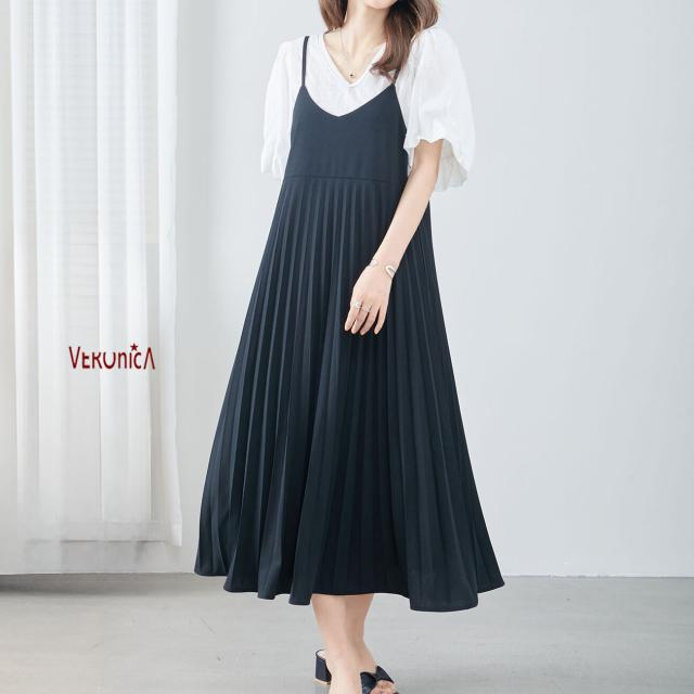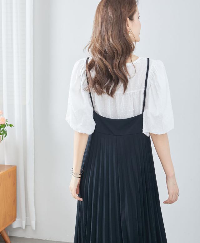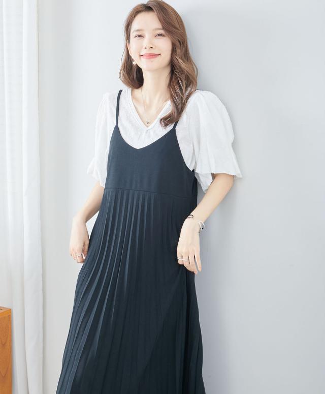 人気のプリーツワンピース。インナーにはTシャツなどとあわせて大人っぽく、おしゃれ見えするキャミワンピース。春から秋まで長い期間着用できて着回力抜群のワンピース。