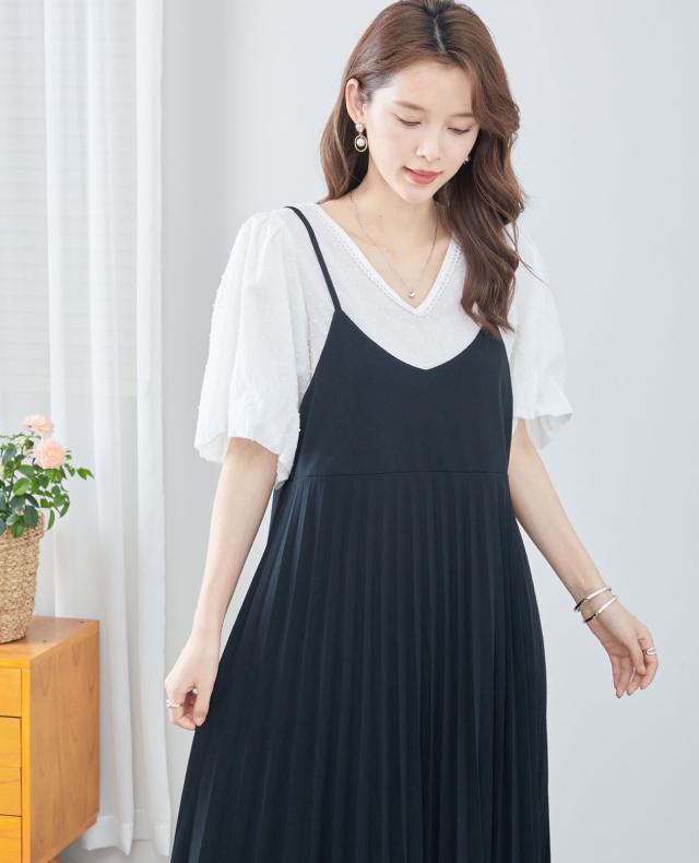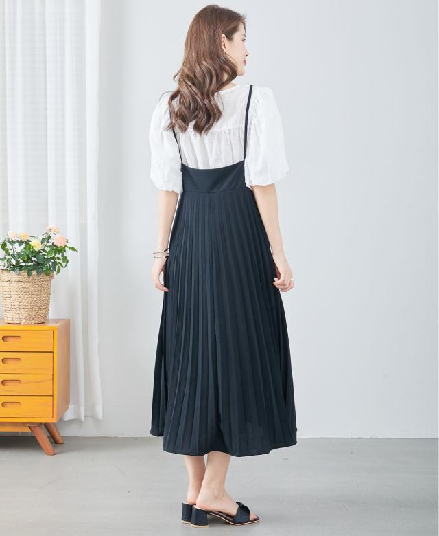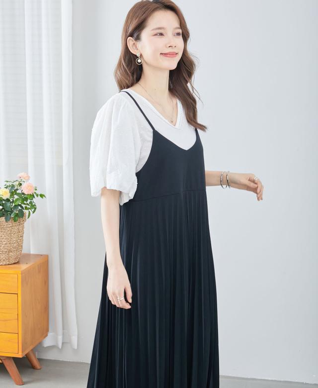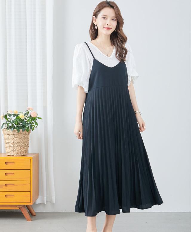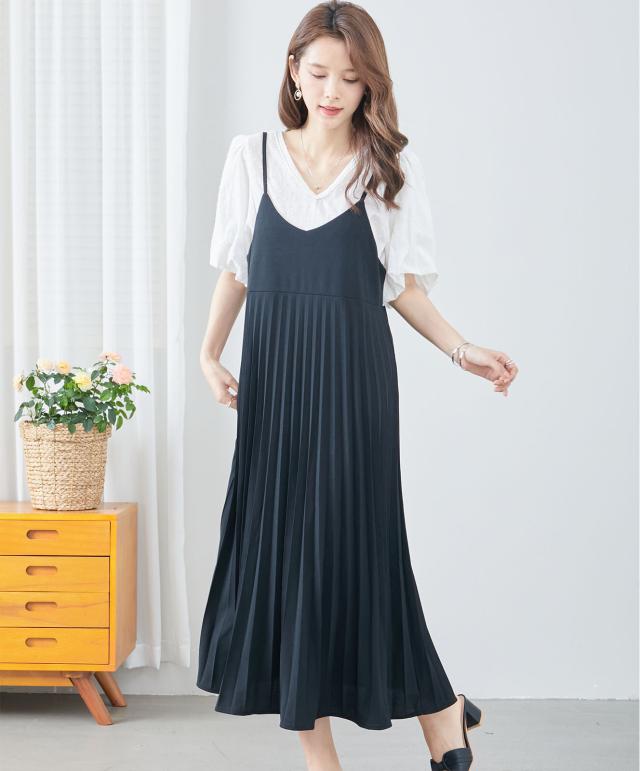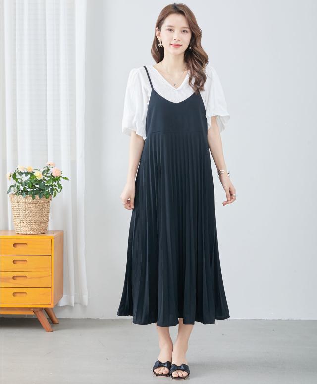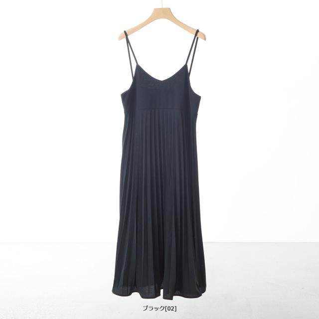 【即納】プリーツキャミソールワンピース 膝下丈 体型カバー キャミワンピ 新作 春夏