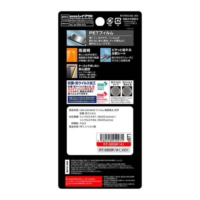 シンプルスマホ7 フィルム 光沢 シンプルスマホ6 BASIO active2 SHG12 active SHG09 BASIOactive ベイシオ アクティブ 指紋防止 抗菌 つや 保護 スマホフィルム