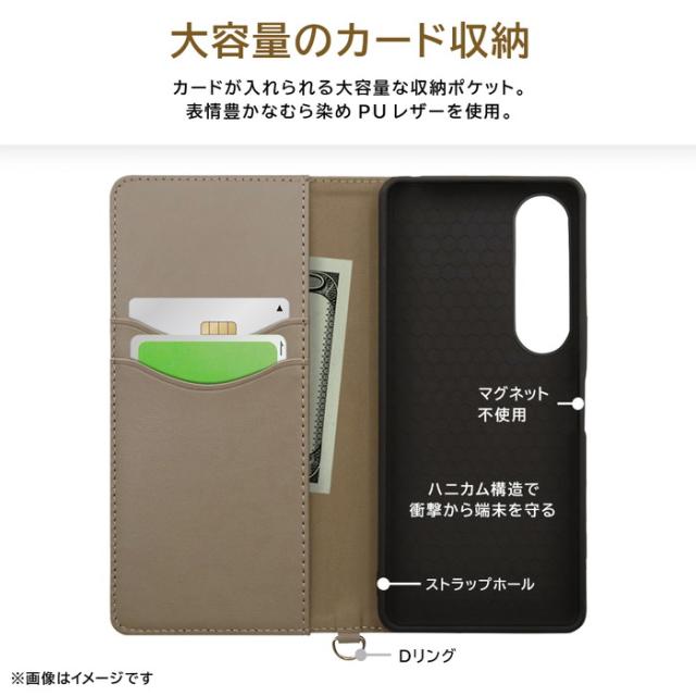 表情のあるむら染めPUレザーとトープ色のPUレザーを組み合わせた、『トムとジェリー ( トムジェリ )』のデザインが施された手帳型Xperia 1 VI 用ケース。