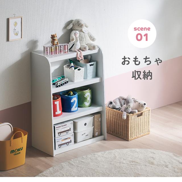 シェルフ 幅70cm ラック 収納ラック おもちゃ収納 絵本棚 ランドセルラック 小物収納 ブックラック 4段シェルフ 収納棚 リビング収納 キッズ 子供用 子供部屋 木製 シンプル Ilona(イロナ)