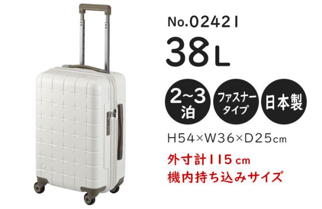 プロテカ スーツケース 360G4 (38L) 日本製 キャスターストッパー付き ファスナータイプ 2〜3泊用 外寸計115cm 機内持ち込みサイズ 02421