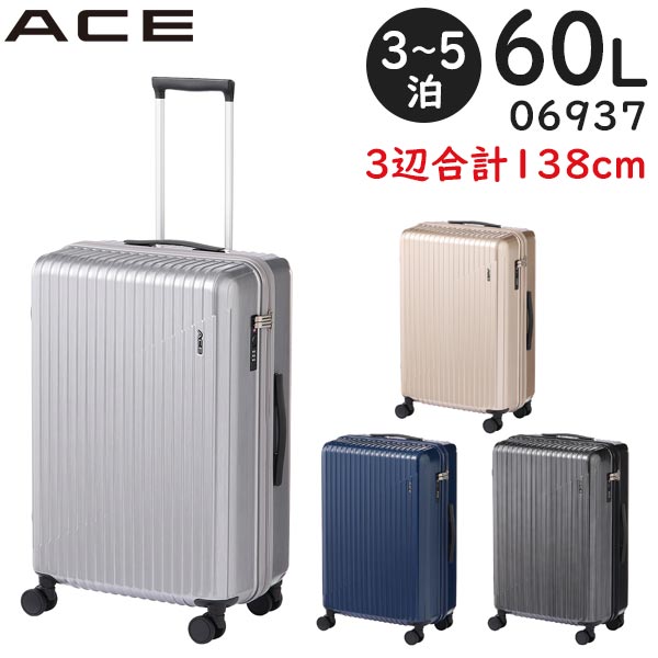 ACE クレスタ2 (60L) ファスナータイプ スーツケース 3〜5泊用 キャスターストッパー機能 3辺合計138cm 手荷物預け入れサイズ 06937