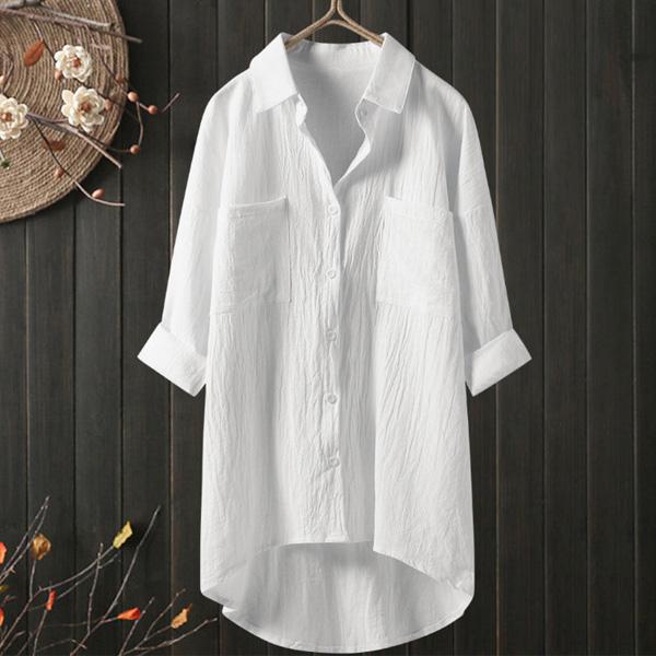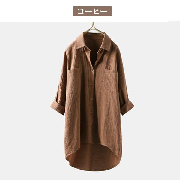 シャツ レディース ブラウス トップス チュニック 7分袖 前開き ポケット付き カジュアル 着痩せ 送料無料
