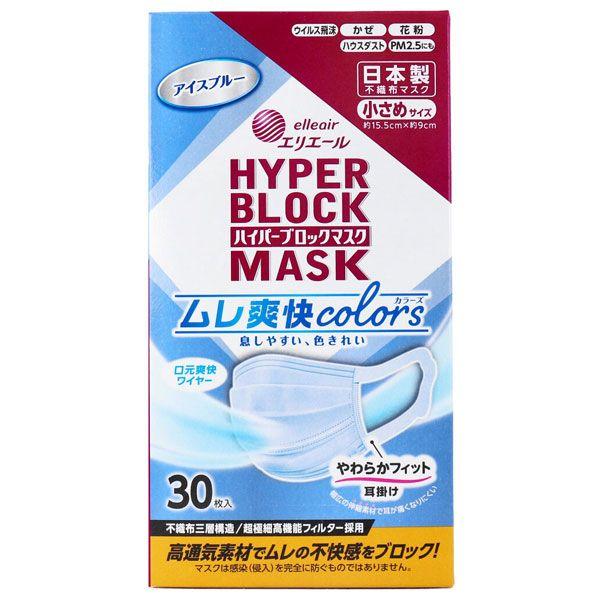 エリエール ハイパーブロックマスク ムレ爽快 colors アイスブルー 小さめサイズ 高通気素材でムレの不快感をブロック 入数:1箱(30枚入)