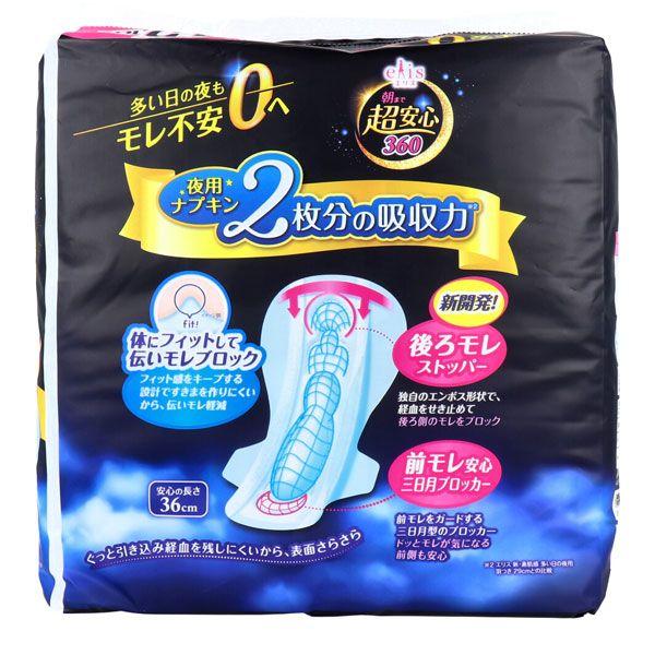 エリス(elis) 朝まで超安心 特に多い日の夜用 羽つき 36cm 多夜でもぐっすり眠れる。モレ不安ゼロへ! 入数:1パック(18個入)
