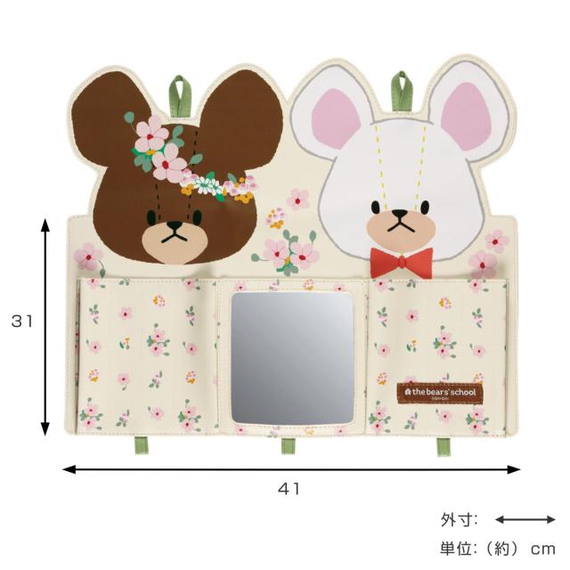 おしたくボード みじたくポケット ミラー付き キャラクター ( くまのがっこう キティ マイメロディ クロミ ドラえもん 収納 子供部屋 壁掛け ポケット 布製 ウォールポケット 子ども 忘れ物 防止グッズ 身支度 子供 )
