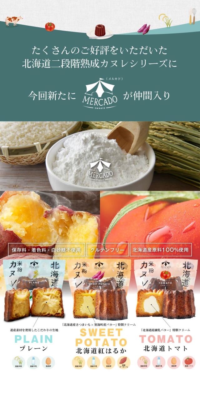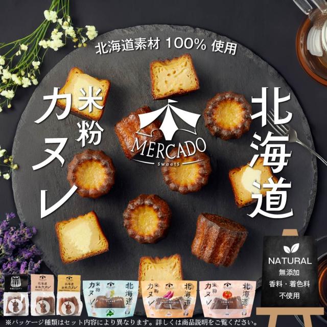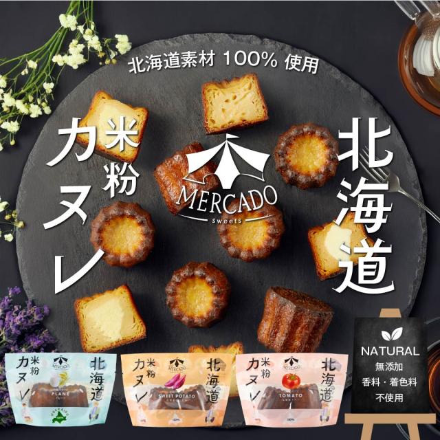 MERCADO 北海道 米粉のカヌレ 専用袋入り 3種類(プレーン・さつまいも・トマト) 各2個セット(合計6個)北海道産 グルテンフリー 無添加 スイーツ お菓子 焼き菓子 お取り寄せ 人気 スイーツ カヌレ お取り寄せ プレゼント 訳あり