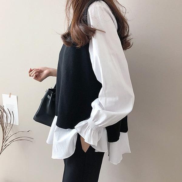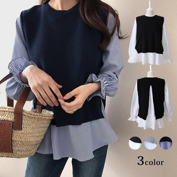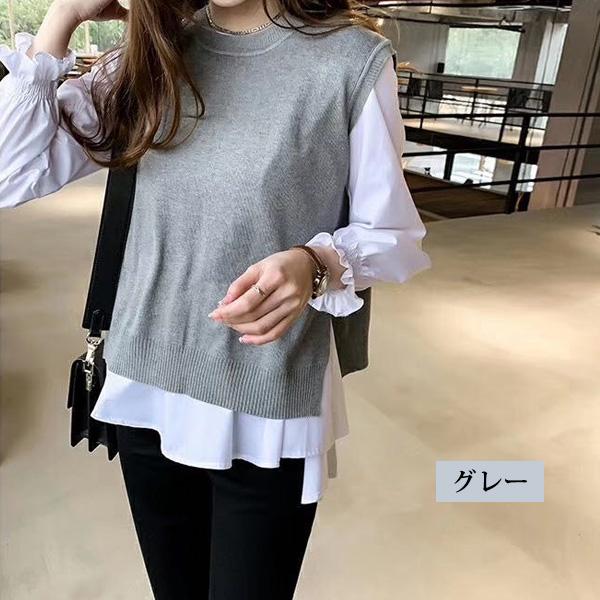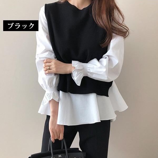 ニット ベスト コーデ ブラウス レディース 2点セット インナートップス 送料無料