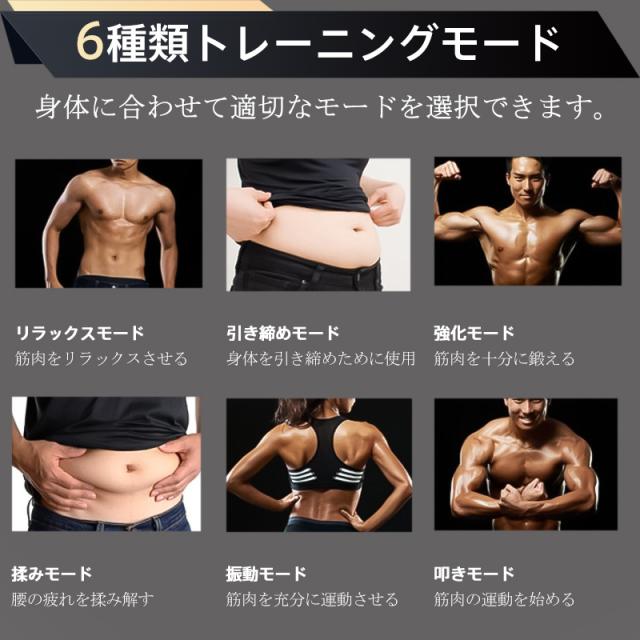 EMS 腹筋ベルト EMSベルト 腹筋マシン 筋トレ器具 腰マッサージ器 6種のモード フィットネスマシーン トレーニングベルト