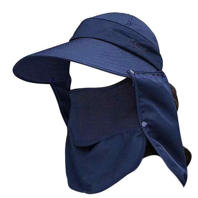[supersakura] ガーデニング 帽子 農園帽 サンバイザー UVカット つば広 折りたたみ 紫外線対策 日よけ 首ガード おしゃれ帽子 フェイスカバー 農作業 園芸 アウトドア 釣り (ネイビー1)