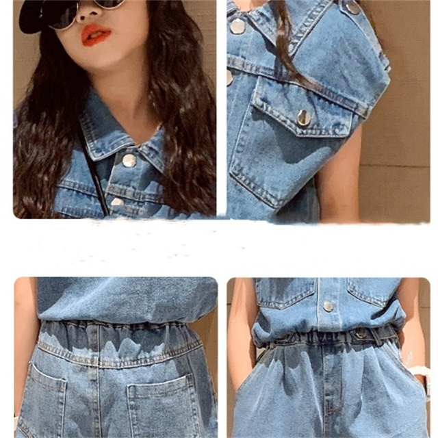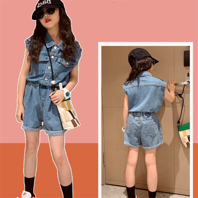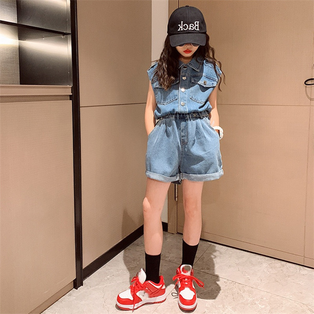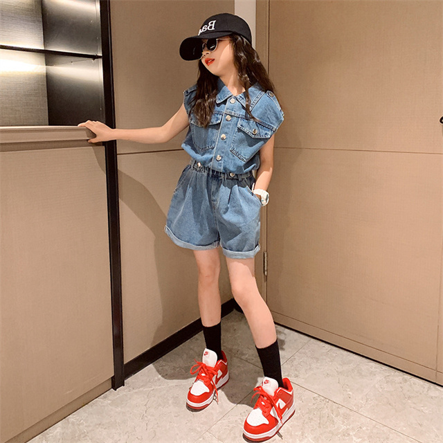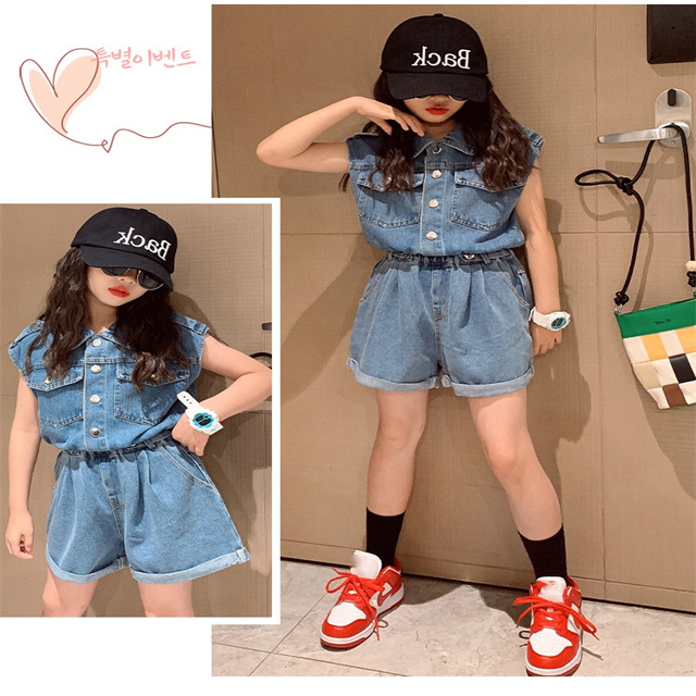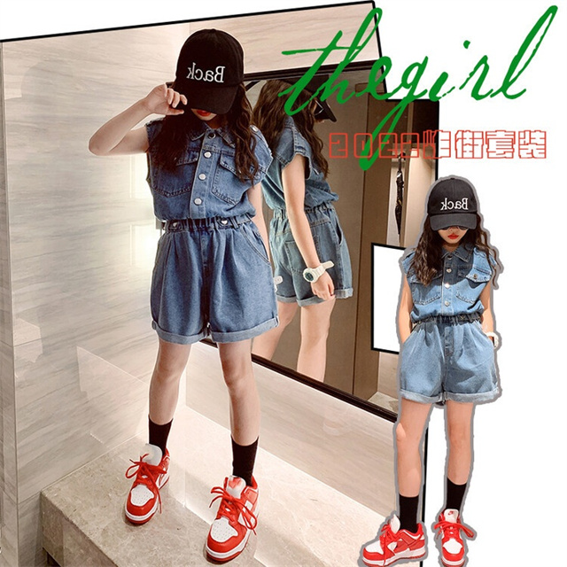 子供服 セットアップ 女の子 デニム 半袖 パンツ 2点セット 洋服 ガールズ 可愛い 夏 新作