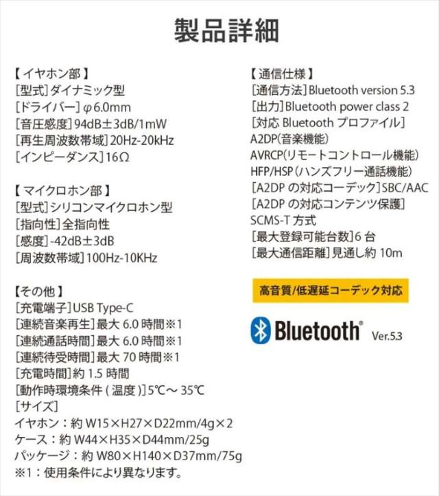 ■通信方法:Bluetooth version5.3