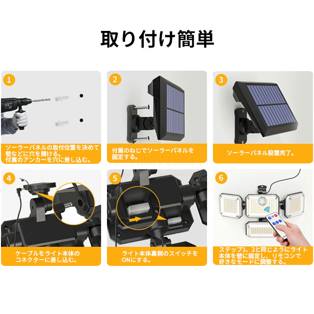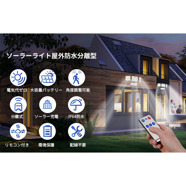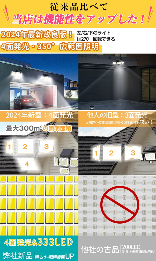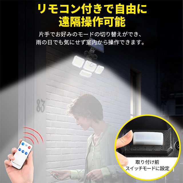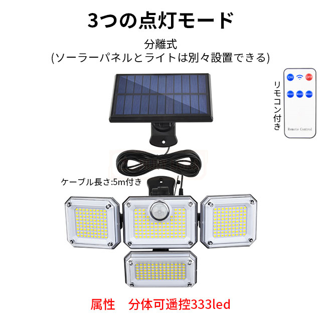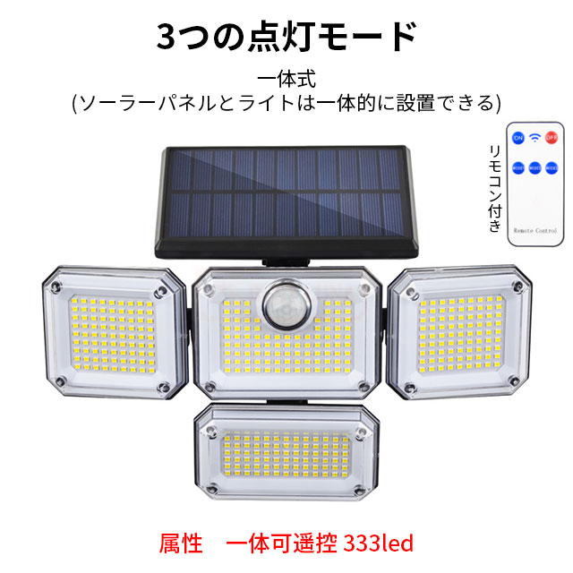 最安挑戦 冬新作 送料無料 新作 センサーライト 屋外 led 防水 ソーラー 4面パネル 333led リモコン式 明るい 人感 センサー ガーデンライト ソーラーライト 防犯 玄関 庭 ガレージ 駐車場 簡単 取り付け 4面発光 IP64防水