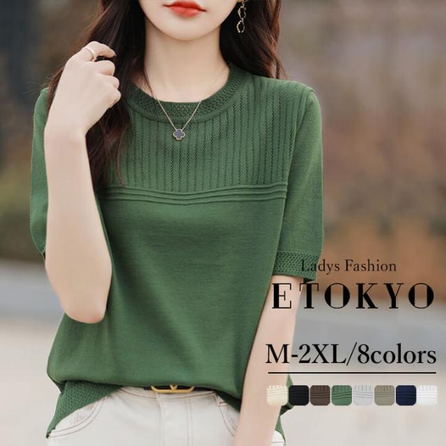トップス ニット 半袖 肌触りが良い 柔らかい ゆったり 着心地 シンプル Uネック ラウンドネック コーディネート バリエーション 合わせやすい 大きいサイズ有 20代 30代 40代 大人 ママ カジュアル 大きめ 大きいサイズ 上品 レディース ベージュ ブラック ダークグリーン カーキ ホワイト 黒 緑 深緑 白 シンプル 半袖 春 夏 秋 袖あり M L XL 2XL 9号 11号 13号 15号 tops50