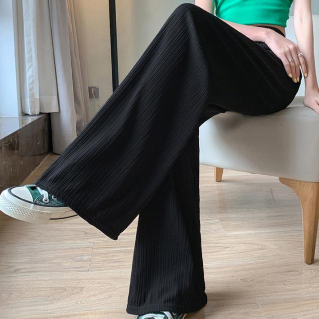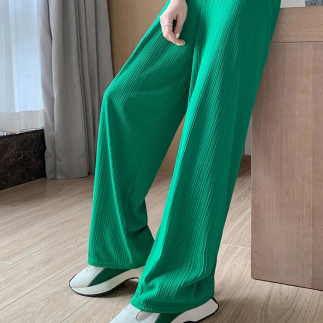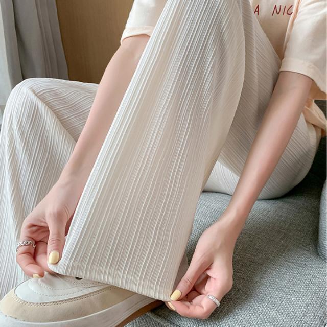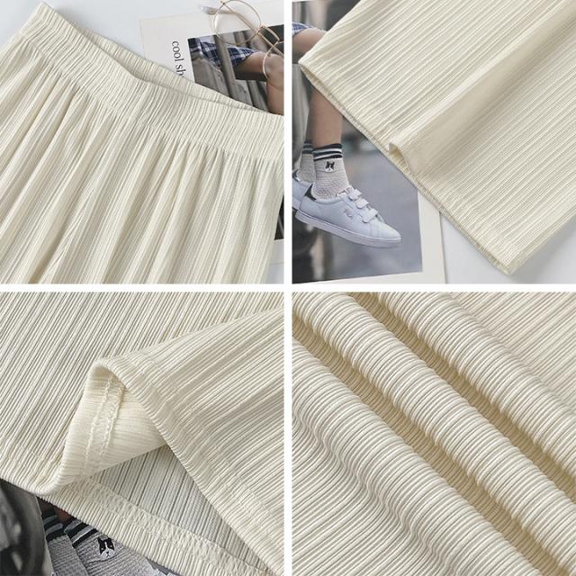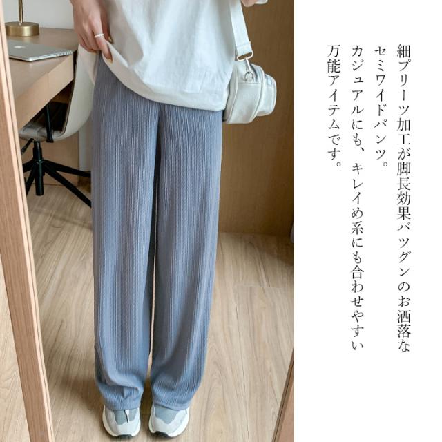 細プリーツ加工が脚長効果抜群のお洒落なセミワイドパンツ。