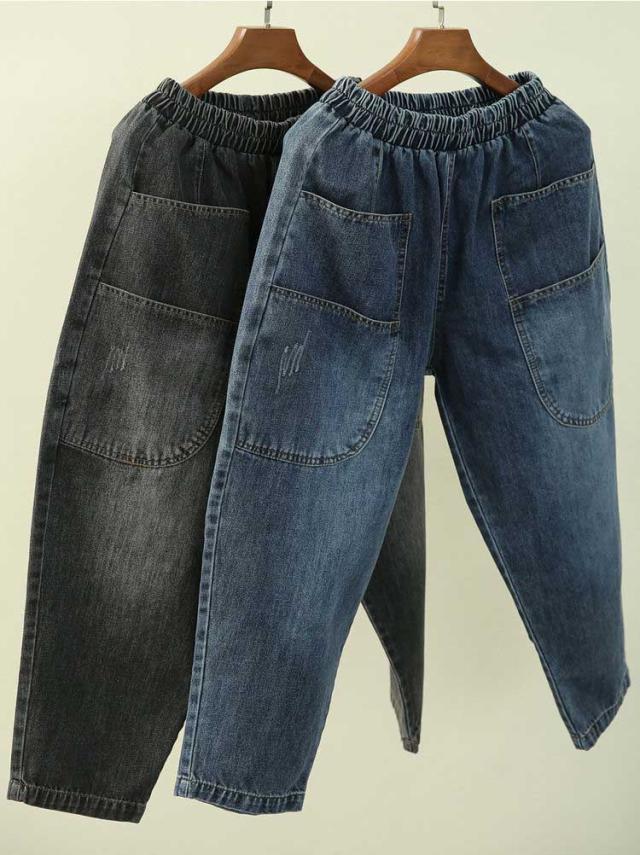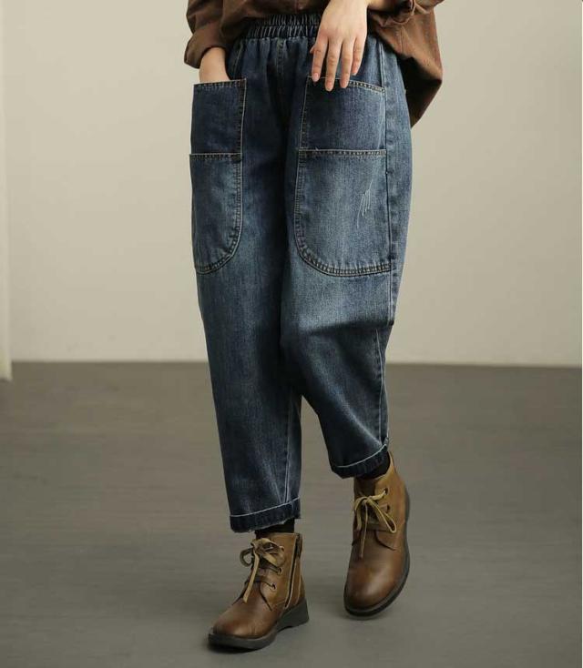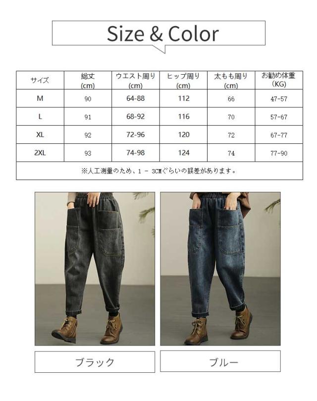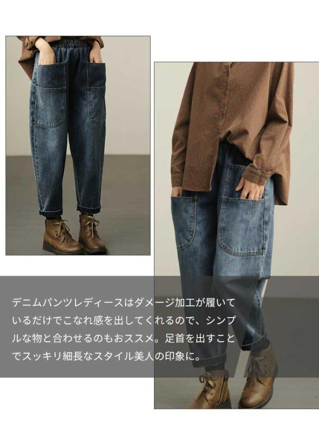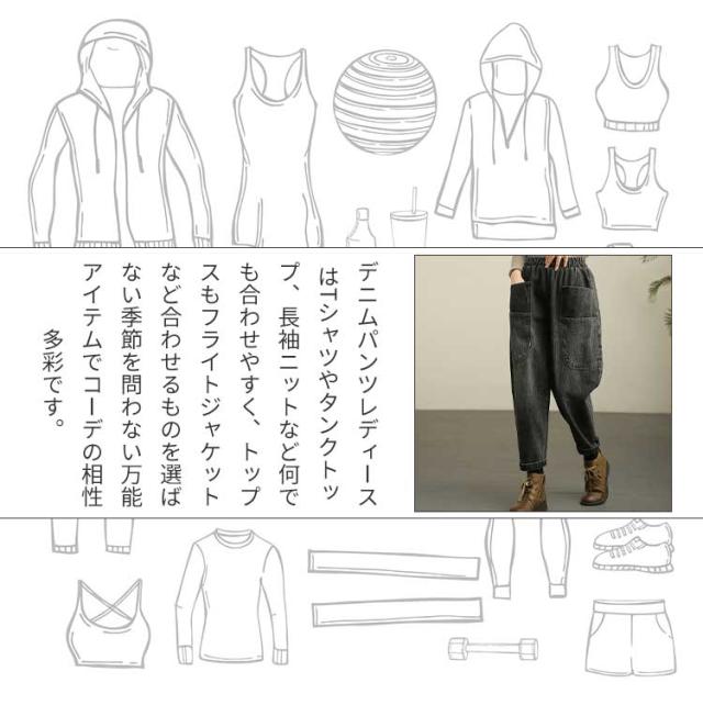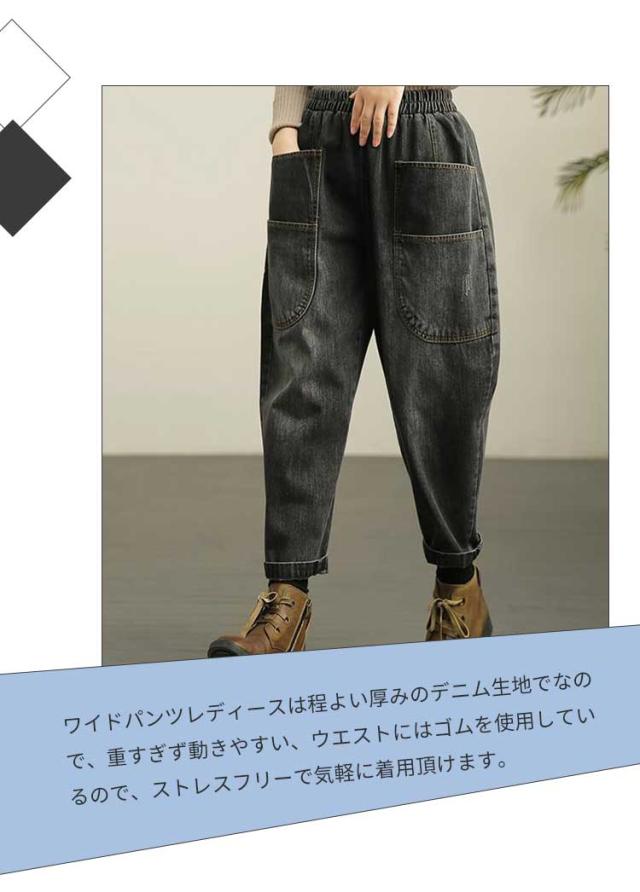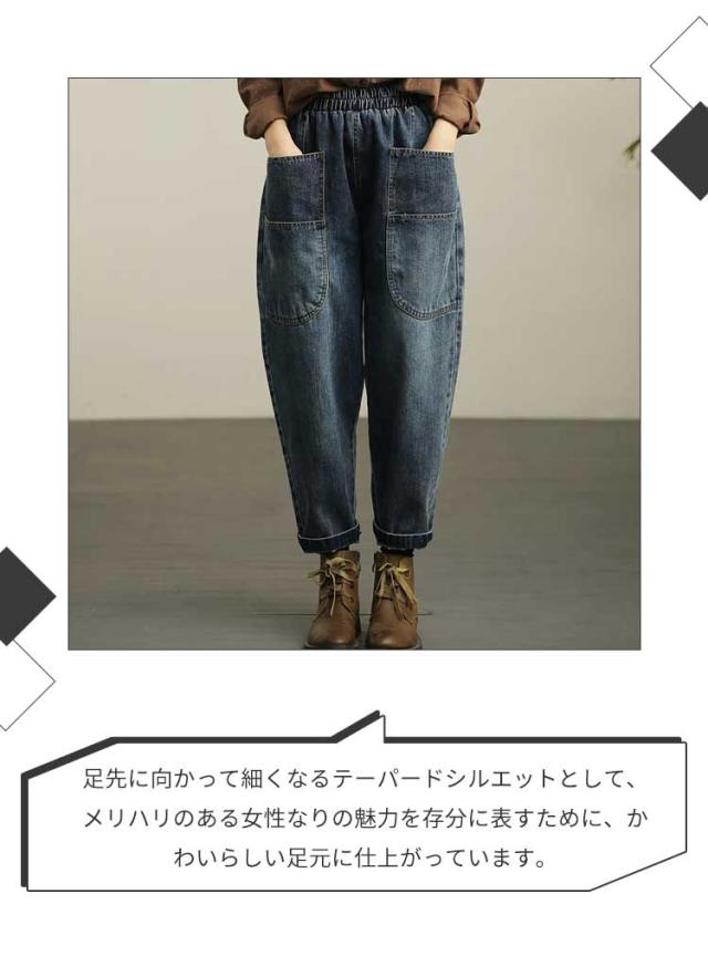 デニムパンツ レディース ワイドパンツ 大きいサイズ ジーンズ ゆったり 薄手 デニムズボン テーパードパンツ カジュアル パンツ ボトムズ