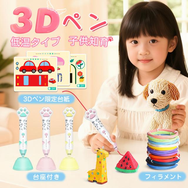 【15日までポイント10%】3Dペン 知育玩具 クリスマス アートペン フィラメント セット 子ども 低温 プレゼント 親子 お絵かき 誕生日 ディスプレイ USB 安全 DIY 想像力 創造力 ギフト