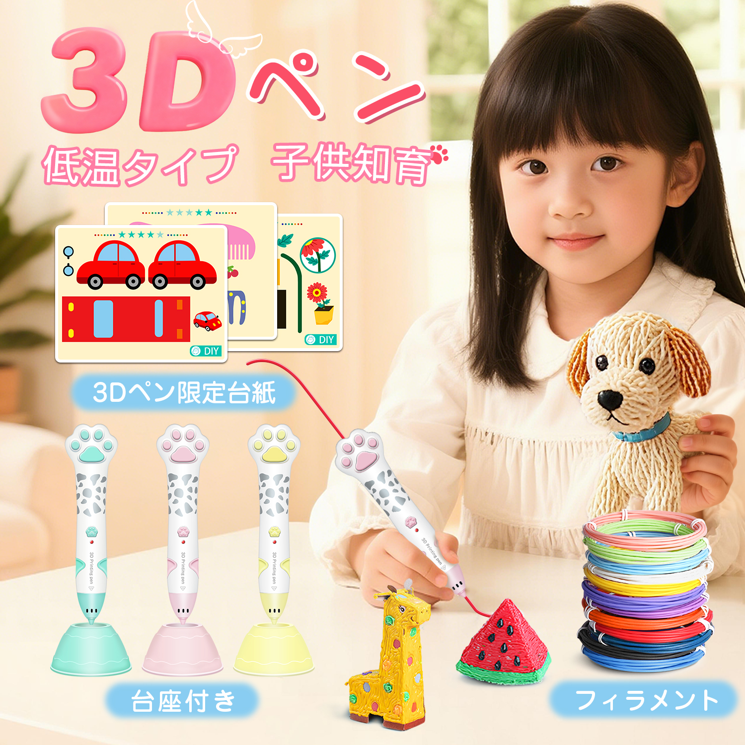 【クーポンで3%OFF】3Dペン 知育玩具 クリスマス アートペン フィラメント セット 子ども 低温 プレゼント 親子 お絵かき 誕生日 ディスプレイ USB 安全 DIY 想像力 創造力 ギフト