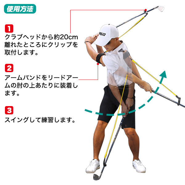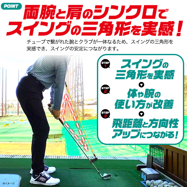 チューブで繋がれた腕とクラブが一体なるため、スイングの三角形を実感でき、スイングの安定につながります。