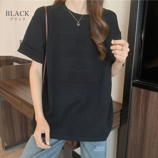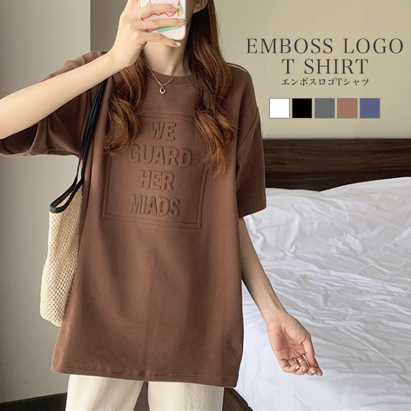 Tシャツ レディース 半袖 ロゴ トップス 夏 エンボス 韓国 送料無料