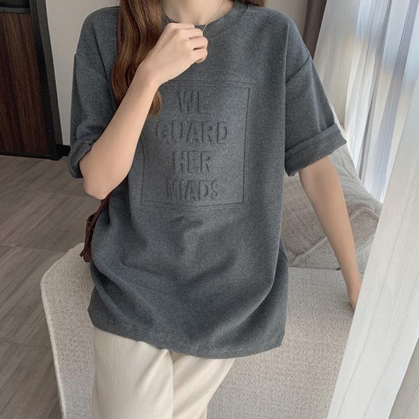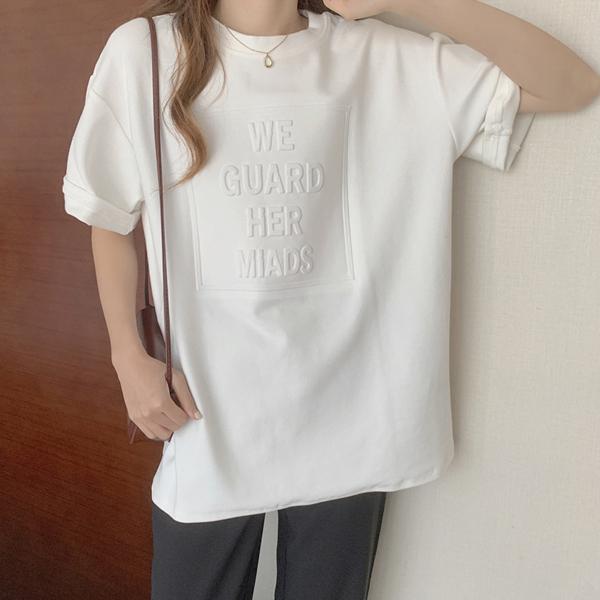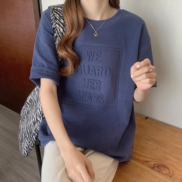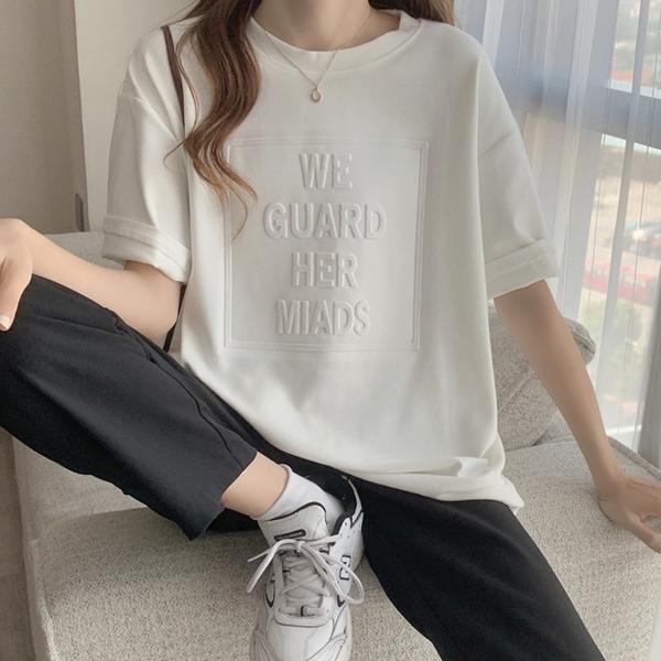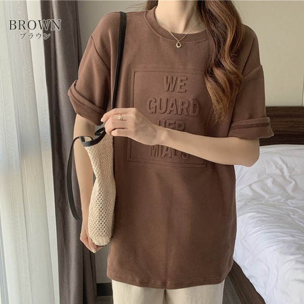 トップス 夏 カットソー Tシャツ カジュアル tシャツ エンボスロゴ ロゴ 立体 厚手 丈夫 透けない 半袖 シンプルカットソー クルーネック ルームウェア パジャマ 上品 肉厚 レディース 女性 トレンド 韓国 韓国ファッション おしゃれ かわいい サマー Tシャツ トップス オーバーサイズ ルーズ ワイド クルーネック ビックTシャツ M L XL ホワイト ブラック ネイビー グレー ブラウン 人気 おすすめ 送料無料