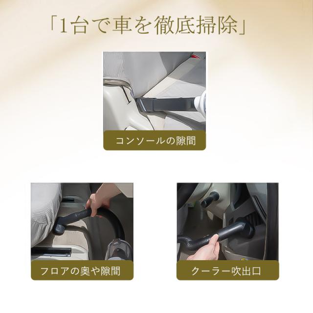 ◇車用のハンディー クリーナーは、4種類のノズルと組み合わせることで、車の中のさまざまな隙間に残った髪やほこりを簡単に掃除できます。