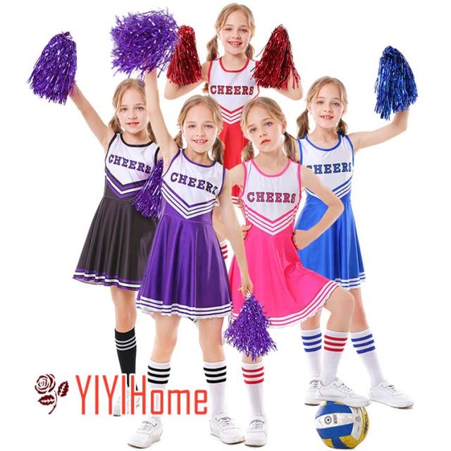 チアリーディングダンス衣装 女の子 キッズ チアダンス服上下 ワンピース ダンスウェア 団体服 チアガール 学生制服 応援団 チアリーディング 演出服舞台 運動服 ステージ衣装 ユニフォーム スポーツ服 舞台衣装 部活 変装 運動会 110cm-150cm