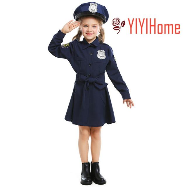子供 制服 長袖 定番 衣装 仮装 コスプレ ハロウィン Halloween ミニスカポリス kids キッズ警官 CA ポリス コスチューム 警察官 ジュニア 女の子 ネイビー