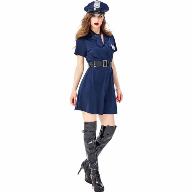 大人 レディース 女性 制服 半袖 定番 衣装 仮装 コスプレ ハロウィン Halloween ミニスカポリス 警官 CA ポリス コスチューム 警察官 ジュニア ネイビー ストレッチ性よい