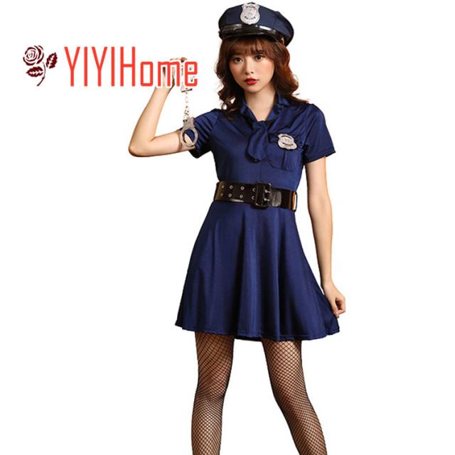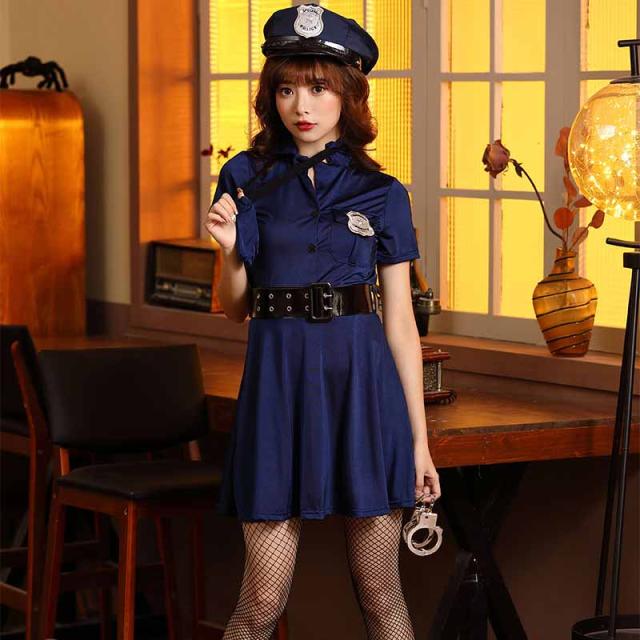 大人 レディース 女性 制服 半袖 定番 衣装 仮装 コスプレ ハロウィン Halloween ミニスカポリス 警官 CA ポリス コスチューム 警察官 ジュニア ネイビー 水着素材 ストレッチ性よい