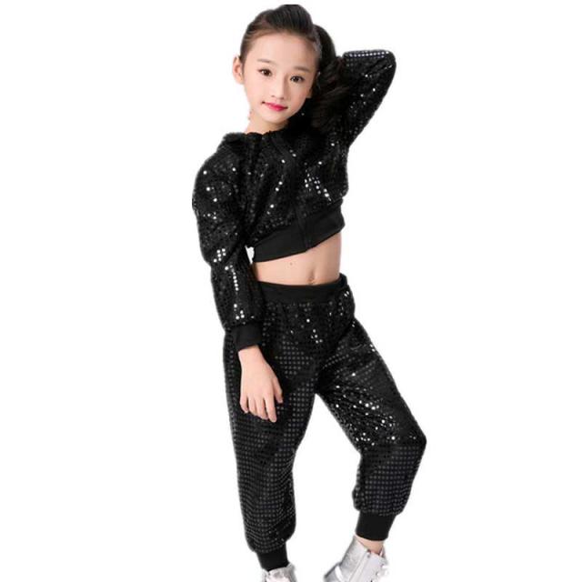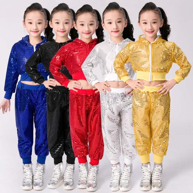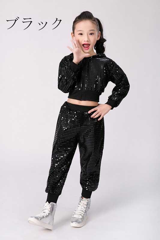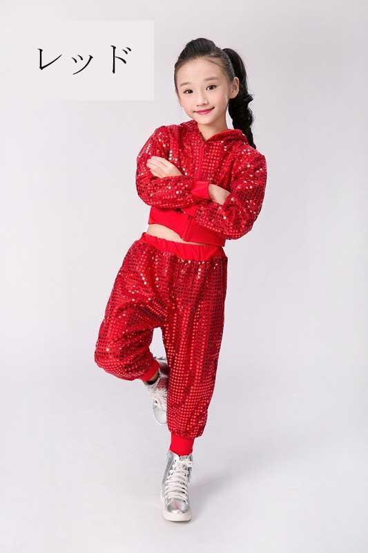 5色 キッズダンス衣装 チアダンス衣装 男子女子 応援団 チアリーディング 演出服 スパンコール 上下二点セット へそだし ジャズダンス 舞台 ステージ衣装 ユニフォーム 部活 運動会 ダンス衣装 団体 演出服 100-170cm 赤 黒 ゴールド ネイビー シルバー